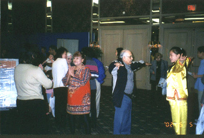 关心平时哪里可以就近参加集体炼功,几乎是每一个当场学了功的人都在问的问题。博览会下来,有二十几个有缘人留下他们的姓名和联络电话,希望能参加九天班。有个西人很感兴趣,并建议说:她有几个朋友都喜欢气功,等她组织好一些人,找到适当的场地就打电话请我们去作讲座,教功和办九天班。