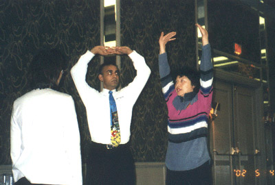 这次健康博览会由于设在当地华人商场密集的“时代广场”对面的喜来登—帕克威酒店,有不少华人也来观看展览。至少有三位中国人认认真真地跟着学员学了功。一些华人开始还带着惊讶的眼光看到法轮功堂堂正正地出现在这样正式的健康博览会上,可是大法祥和慈悲的能量场很快感化了他们。有的认真地看起了展板,有的看着师父的教功录像,一板一眼地自己比划着学了起来。一个来自大陆的人,学完功后,还是久久不愿离去。真是“法度有缘人!”
