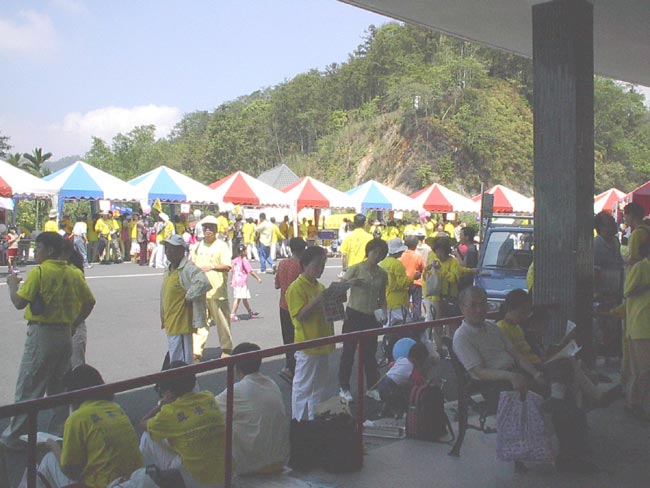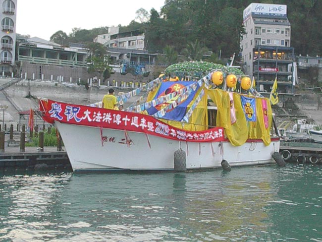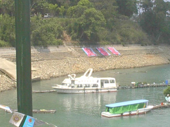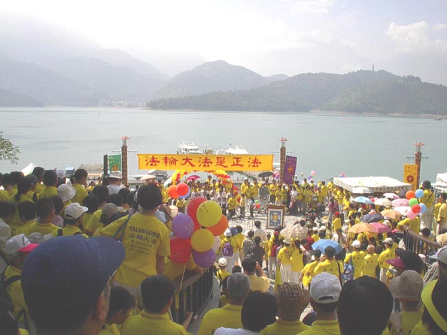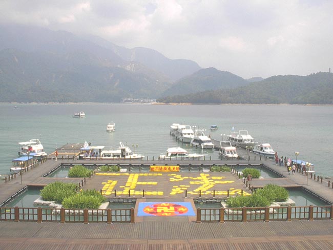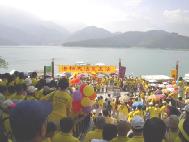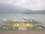 日月潭一向是大陆来台参观人士必游之处,当地学员十分重视。有学员特别在此租店面做生意以便洪法讲清真相,并由附近地区学员排班来支援。而本次为配合活动,更是租用大型活动看板,仿佛在告诉大陆彼岸的观光客「法轮大法好!台湾知道!全世界都知道!」