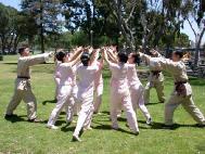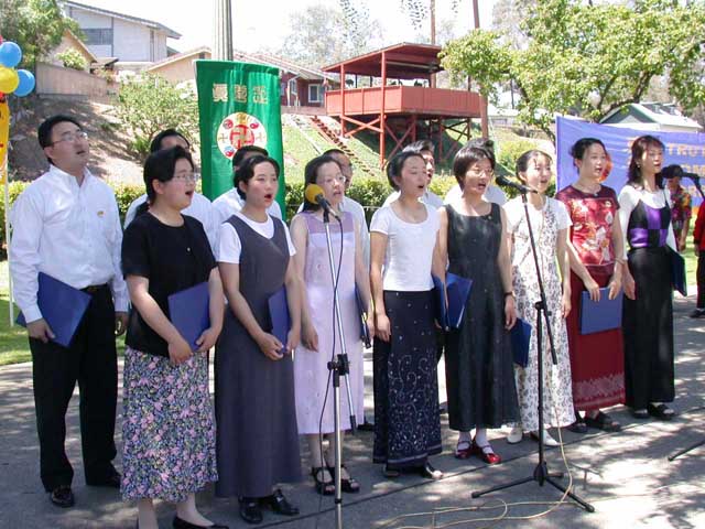 | 参加活动的西人学员 | 合唱《法轮大法好》 | 武术表演《除魔剑》 |