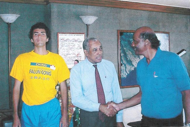 市长阿尔弗雷德.阿莫特决定支持法轮功并提供了帮助。他邀请我们参加在市政厅的一个会议,我们有机会向政治家们讲清法轮功真相。同一天晚上,市长允许我们在市中心演示法轮功,许多人观看了我们的功法演示并索取了大法资料。市民们纷纷鼓励我们继续揭露在中国发生的[江泽民政权]对法轮功修炼者的迫害。许多儿童长时间观看了我们的功法演示。