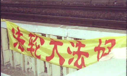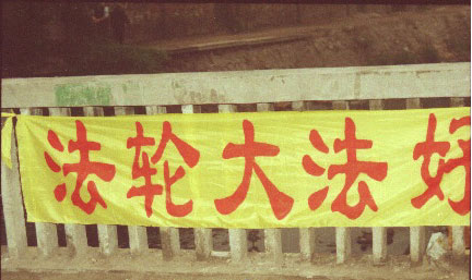 【明慧网2002年5月14日】2002年5月13日,在中国大陆北方某市的地道桥口和公园里、原来的炼功点出现了“法轮大法好”的横幅和庆祝世界法轮大法日的标语和图片。