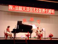 5月13日晚在东京丰岛公会堂举行庆祝晚会,包括独唱、小合唱、功法表演、大合唱、舞蹈、电影、演奏等。