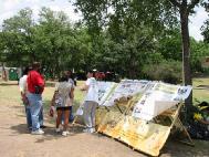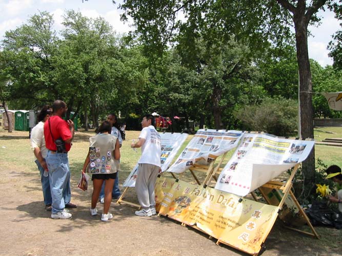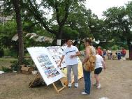 在大法日即将来临的这个周末,红十字会包下市中心的一个公园举办大型国际文化展览活动,当我们得知这个消息时,唯一的一个给中国的展位已经分给了中华联谊会。但因为这一天会吸引大批的中外市民来游玩,我们依然决定进入这个公园办一次图片展。高兴的是公园管理部门告诉我们只要不卖东西,图片展可以在任一块草坪上进行。
