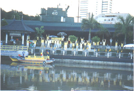 活动过程中,也遇到邪恶的干扰,由于大家正念强,邪恶没能达到目的,洪法庆祝活动照常进行。震撼最大的是拉横幅。因历史原因,在印尼已经有30年没有人敢公开在街上出现中文。当“法轮大法好”,“真善忍”,及一条7米长的“普天同庆法轮大法洪传十周年”的横幅在泗水最热闹的中心大街最显眼的高处展现,为期三天时,引起极大的震动。这是大法的威德,取得极好的社会效果。