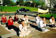 发布会后,大法弟子即兴向来宾及路人演唱《法轮大法好》,《如梦令》等大法弟子创作的歌曲并播放《天安门自焚疑案》和《中国江泽民政府在世界各地对法轮功的迫害》,过往行人纷纷驻足观看,索取资料。不知不觉中,四个小时过去了,最后在整点发正念后结束了庆祝活动。整个过程祥和圆满。一位参加我们庆祝活动的不修炼的人说:你们的法轮大法日活动真好。