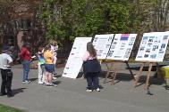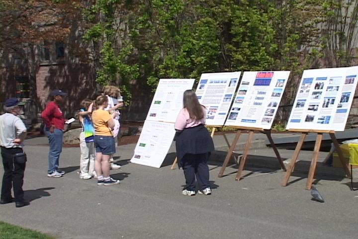 伴着英文解说词的炼功音乐,身着红黄相间炼功服的大法弟子们上台为对面草坪上的观众表演五套功法。人们听着祥和优美的音乐和介绍大法的录音,看着根据医学实验结果和健康统计事实编辑而成的图片展览,人们对大法有了良好的概要性了解。许多有缘人当场跟学员学起了动作,并提出了许多他们感兴趣的问题。同时,他们表示:在亲眼目睹了大法的纯正和优美后,他们对中国江泽民政府疯狂迫害法轮功感到愤慨。