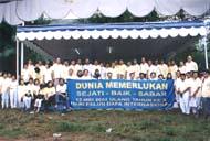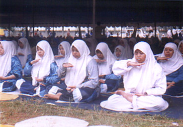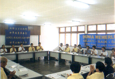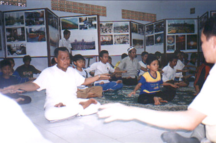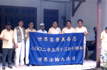 在老师慈悲安排下,印尼法轮功佛学会于五月十二日,应邀参加雅加达郊区,丹格朗(Tangerang)市镇回教阿西地基亚学馆举办规模盛大的法轮功介绍大会,有三千多名回教师生及回教长老参加会议。会议是由阿西地基亚学馆回教长老主持开幕,接下活动由法轮功学员进行,如面对报社记者、电视台讲清真相、分发资料、五套功法教功演示,正法之路图片展览等等。