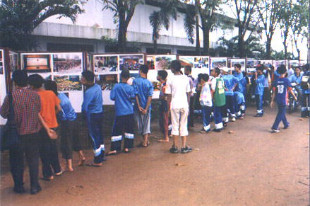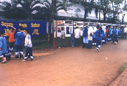 大法弟子还在广场侧旁,以三十二块白板,张贴一百五十多张正法之路图片,其中有印尼学员在各地的洪法活动、法轮功在世界各国的洪传、中国大陆大法弟子被惨酷迫害的真实图片等,吸引了很多观众,他们进一步了解了法轮功真相。