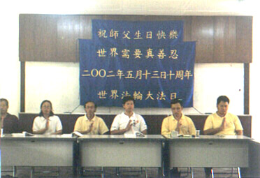 | 2002年5月13日世界法轮大法日,大法弟子整点发正念,铲除邪恶,学法提高心性。 | |