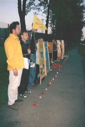执法部门派人来维护秩序。几乎是活动一开始,一个身穿警服的人用录象机对着我们拍摄。他说他是警察,把我们拍摄下来是因为他对法轮功很感兴趣。我和他交谈了一会儿,但在这短短的时间里,我说到了关于法轮功弟子在中国被迫害的事实,全世界法轮功都在洪传并广受欢迎,并且告诉了他,从1992年到1999年中国政府也是一直支持和称赞法轮功的。他问我,我们胸章上面写的是什么。我告诉他,上面写着:真善忍和法轮大法好!他问我是否可以给他一个这样的胸章,我便把自己衣服别着的胸章取下来,这时他说:“我不能要,这是你的呀。”我笑着把我的胸章递给了他。但我手里握着的不仅仅是一个胸章,里面包含着大法弟子的慈悲,那是大法弟子为了告诉人们“法轮大法好”走向天安门所具有的这种慈悲。我们彼此目视对方,他笑了向我道了谢接受了那个胸章。那一瞬间我的眼前出现了走出来证实法的大法弟子高举“真善忍”和“法轮大法好”的横幅,孩子高兴地手拿大法真相资料跑向自己的父母的画面。我感觉到了那种慈悲,当一个非修炼人,一名知名度很高的钢琴演奏家弹着法轮大法好的乐曲时,在每个参加日内瓦法会的弟子心里升起的慈悲。