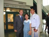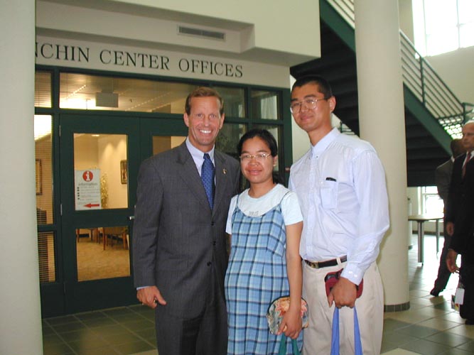向布什州长介绍情况在退场时,我们主动同执行州长富兰克.布罗根交谈,并更深入的介绍了法轮功在中国国内外遭迫害的情况,他接受了大法资料并对学员们的遭遇深表同情,他祝我们好运并欣然同我们合影留念。