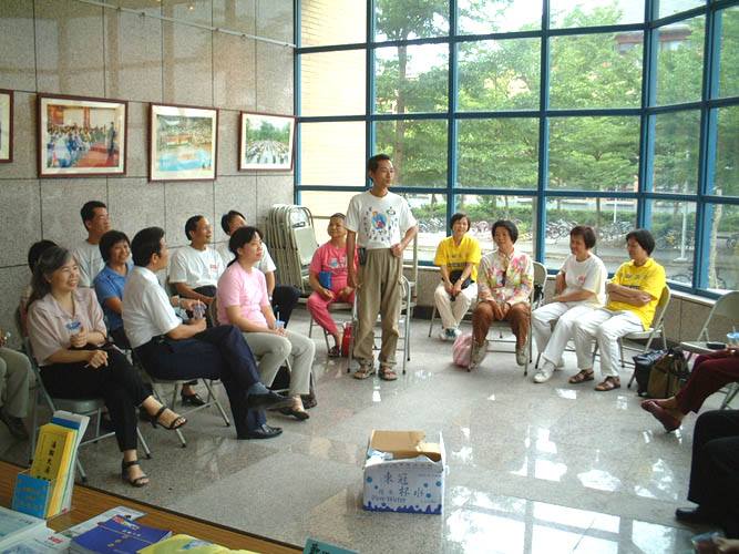 在修炼心得讲座上,聂淑文女士畅谈自1993年在北京东方健康博览会上得法后的修炼历程,讲演过程真挚感人。讲座结束后,一位刚得法不到一年的东华学员说:「我从她的心得分享中看到了自己很大的差距,我看到了一个心心念念都放在正法、洪法中的法轮功学员。」