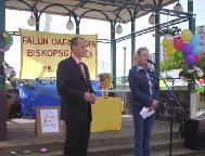 【明慧网2002年5月19日】5月15日,瑞典迎来了第一个法轮大法日。哥德堡市比斯哥园区(Biskopsgården)显得格外热闹,区广场的讲台被彩色气球和花朵装扮得很漂亮。讲台的中间挂着一个醒目的横幅:“比斯哥园区的法轮大法日,5月15日”。该区政府向市民宣布每年的5月15日为该区的法轮大法日并在该区的中心广场为该日的创立举行了剪彩仪式。