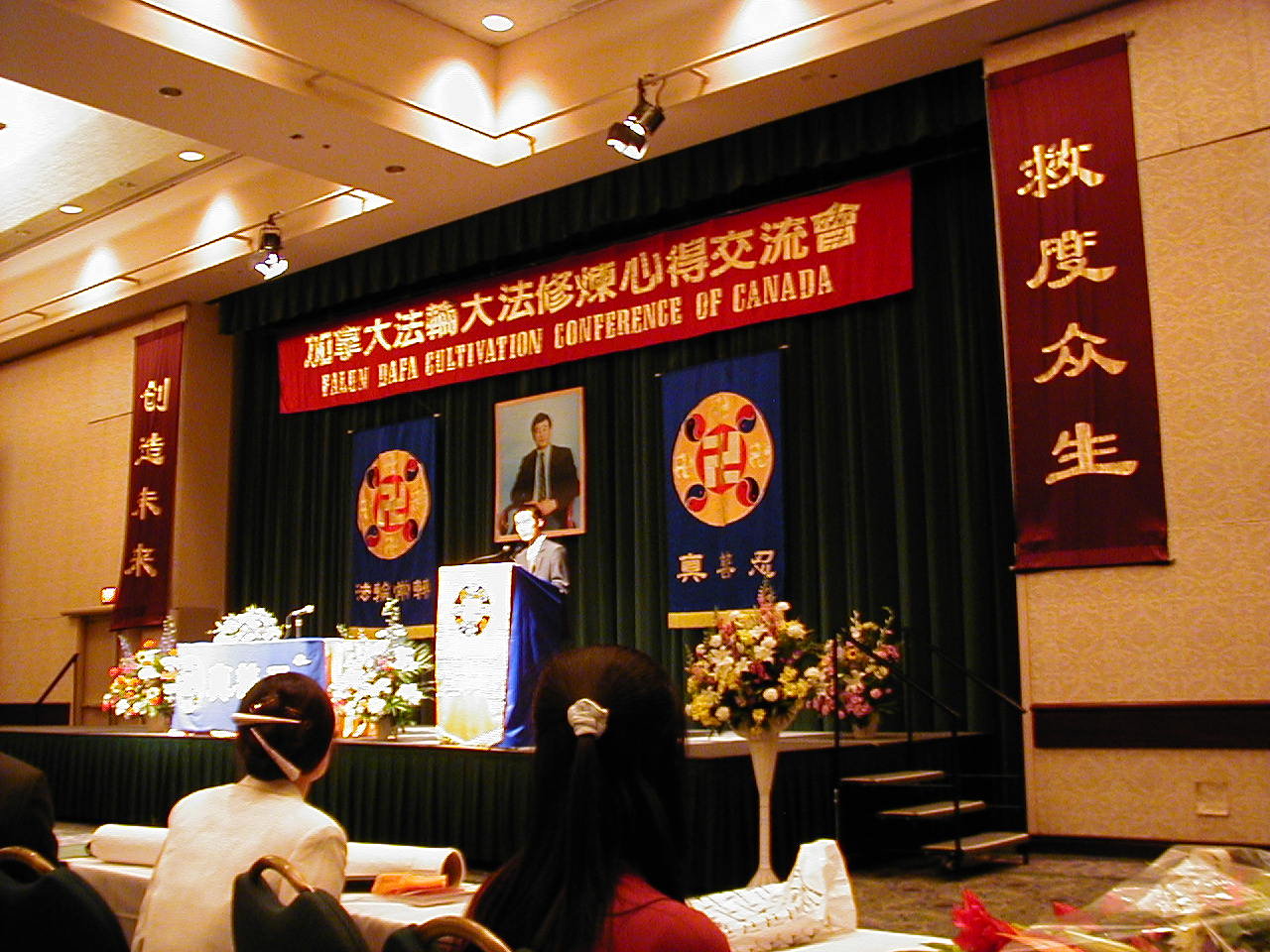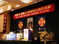 中午交流会结束之前,两名大法弟子宣读了师父祝加拿大法轮大法修炼心得交流会圆满成功的祝词,全场报以极其热烈的掌声。之后学员宣读了师父的新经文“大法之福”。掌声、泪水交织在一起,言语无法表达大法弟子们当时的心情。