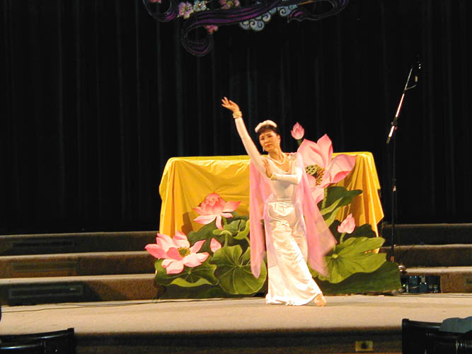 音乐会节目十分丰富多彩,绚丽多彩的乐舞“普天同庆”在观众的阵阵掌声中拉开了演出的帷幕。曾走上天安门广场讲真相的加拿大西人女弟子康妮字正腔圆的一首“法轮大法好”和曾走上天安门广场讲真相的西人弟子们发自内心的一首“为你而来”更是将音乐会推向了高潮。