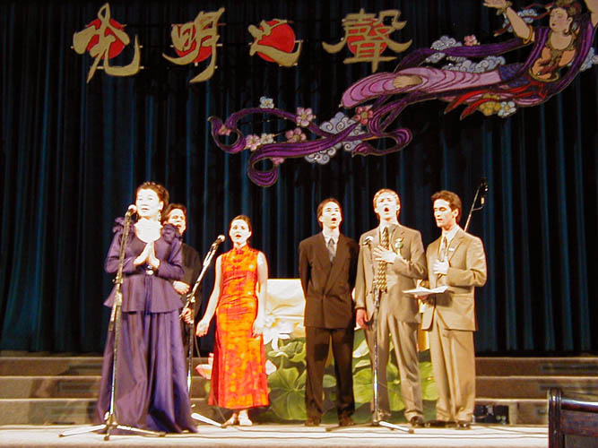 5月18日晚上,在多伦多大学毕业典礼大会堂里,演出了“光明之声”音乐会,晚会的节目全部是由大法弟子创作、编排和演出的。演员阵容强大,包括来自东北的女高音歌唱家白雪,古筝演奏家陈致平,原中国中央乐团大提琴陈汝棠、长笛演奏家陈凝芳,来自美国西部的女高音歌唱家姜敏。这些艺术家们谈到修炼法轮大法让他们身心受益无穷。今天,他们愿用自己的歌声让更多的人们了解法轮大法。