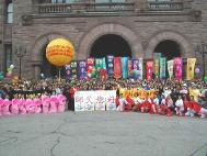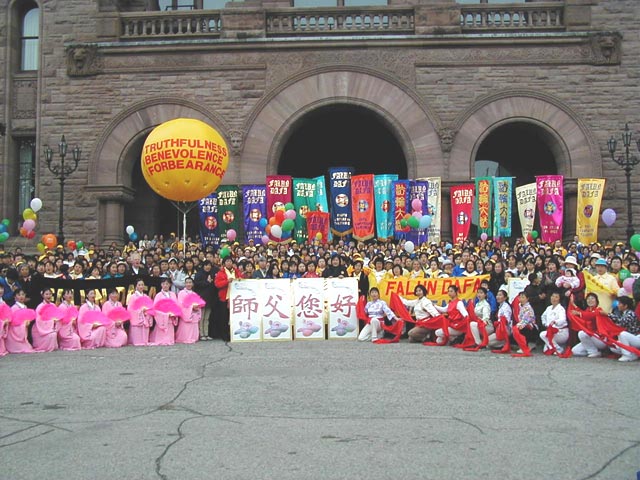 游行结束后,来自于世界各地的大法弟子在安大略省前集体合影,记载下正法中这一珍贵的镜头。
