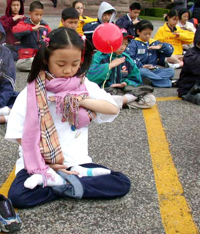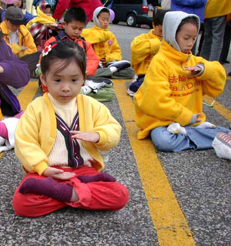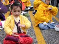 弟子们一路唱着“法轮大法好”,场面殊盛壮观。