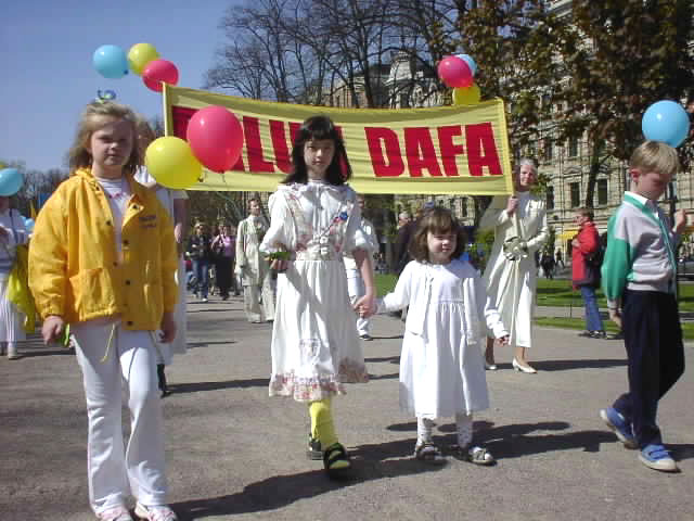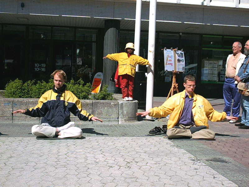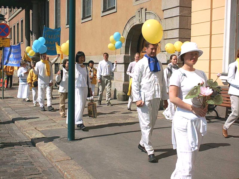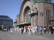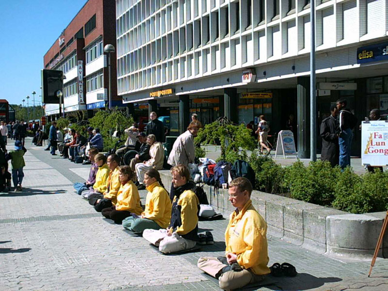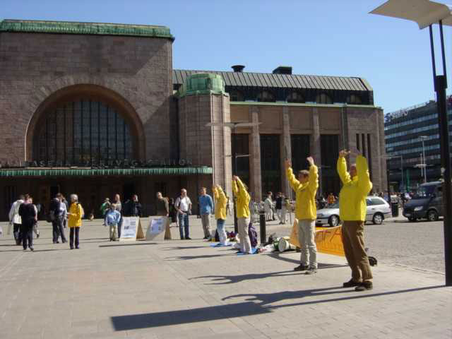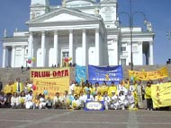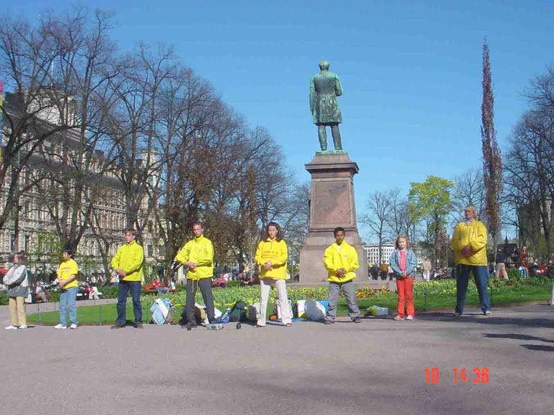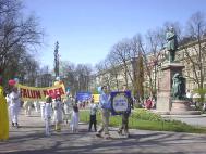 游行过后,学员们向观众介绍大法。一位芬兰学员首先致词,介绍美好的法轮功修炼实质并解释在中国(江泽民)迫害法轮功的背后原因,然后代表全世界法轮功学员呼吁善良的芬兰人民帮助制止这场迫害并为世界创造一个更美好的环境。另一位芬兰学员分享了自己的感人经历,讲述了修炼法轮功给人带来的身心巨大益处。