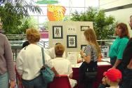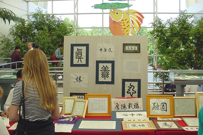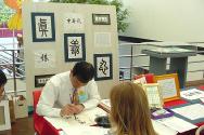 因为书法展位排队等写字的人很多,两位法轮功学员就成为工作人员来到书法展位帮忙翻译介绍。书法插花展位各两位学员发了很多的真相资料,书法展位每人发一张精美的中英文“真善忍”,对中国人就有更多资料。这两位学员现身说法地讲真相,很多原来说大法不好听的话的人转变了看法。几对中国夫妇看到“法轮大法好”高兴地笑出来,走几步后还回头笑着。一位原国内著名高校的老校长和我们交谈后,拿走了资料,说:“坚持吧,好人好报。”