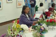 从纽约来的学员到来后,在准备中,大家交流着心得,正念越来越强。大会前最后一晚,我去植物园,此时不少人已经和我熟络起来,并主动找我录像。想不到听说原室内展位有两个都来不了,大会空两个桌子。我说,我们插花和书法可以占掉。回来后,我们感到,明天“真善忍”可以摆到大厅正面入口处。