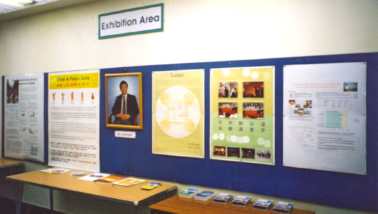 在这次的展出中,除了功法介绍、大法在世界的弘传和各界褒奖及健康调查报告等图片外,大法弟子们还将伟大师尊的照片、法轮图形和“论语”以精美设计的图片形式庄重地介绍给市民。