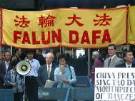 在刚刚过去的一周里,由200多人组成的游行队伍在曼哈顿庆祝了法轮功传播十周年纪念日,五彩缤纷的游行队伍由汽球、中国传统舞蹈和音乐组成。然而,当游行队伍经过中国城时,遇上了一群不速之客,这些人叫喊着由侨报和星岛日报的文章中使用的诽谤性口号,他们的喊叫及姿态如此恶劣,以致于不得不由一队警察来护卫着法轮功的游行队伍,而且我们不得不改变了预期的行走路线。在这种情况下,那群暴徒仍然追赶了几个街区,继续对我们大喊大叫。当我们在附近的公园平静地炼功时,他们还在咒骂我们,尽管当时有警察组成的人墙卫护着法轮功的炼功场地。