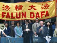 我们是这一案件的起诉人,来自各行各业,有医学研究工作者、医生、商人,也有家庭主妇、时装设计师、图书管理员、大学教授、信息技术专家等等。我们今天来到这里想通过这一诉讼案来停止在纽约市发生的对法轮功仇恨的传播。它在我们的城市不应有市场,在我们的社区及我们的生活中都不应有立足之地。