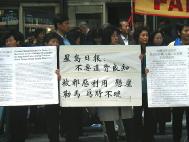 声明还说,在过去的一年里,由这两家报纸发表的一系列诽谤性文章中,将谎言、毁誉性的声明及诽谤性标志编织到文章里,用以煽动纽约居民对法轮功学员的仇恨和不信任。由这些文章引起的结果是客观存在的,他们已经对我们的生活不同的方面造成了损害,包括我们的工作单位、我们的社区、我们的朋友交际圈甚至我们的家庭。
