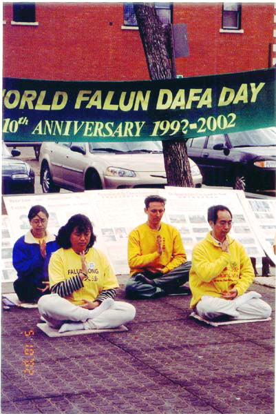 此前,五月四日,爱民顿大法弟子专程驱车十数小时,来到格兰德伯爱瑞市(Grande Prairie)与那里的市民一道共庆“法轮大法月”。常务市长比尔格文(BILL GIVEN)先生到场宣读了褒奖令。在观看过大法展板和学员的功法表演后,他表现出对法轮大法的极大兴趣,欣然接受学员送给他的真相光碟。当地媒体的记者也对大法表示了很大的兴趣。之后,爱民顿学员分头行动,有的前往当地图书馆捐赠大法著作;有的到当地华人餐厅去讲真相和摆放资料;有的往各个主要商场饭店发放资料;有的在原地继续演示五套功法并派发传单。西人弟子回来后高兴地说,“这个小镇的每个角落都有了我们的大法资料。”有缘的格兰德伯爱瑞市市民对大法表现出莫大的支持与兴趣,有的当时就要求学功。我们回到爱城后,仍然有人打来电话,索要教功录像带。