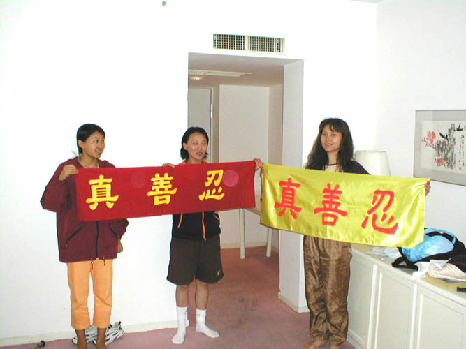 25日中午,他们把我们带到机场,怕我们向旅客说明真相,不让我们下车,把一切手续办好后,没有走大厅,而是从另外没人的通道将我们送上飞机,最后我们也没见到日本使馆的人员。这些警察也是受蒙骗的,当我们告诉他们在国外法轮功是合法的,可以游行,并得到警察的保护,在国际上的有很高的声誉,他们不相信。
