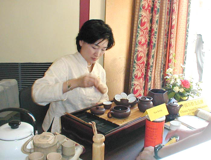 在唐装、功法表演的同时,还有画家章翠英女士的绘画作品展览,以及学员的茶道演示和书法表演,来宾们在品尝闻名世界的中国美食的同时,也获得了艺术上美的享受,对中国传统文化的博大精深有了进一步的感性认识。