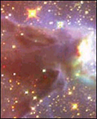 这个星云曾被描述成是新星体强烈诞生的区域。但是最近的红外线照片(图二)表明,鹰星云并不是星体诞生的基地,那里只产生了为数不多的星体而且在迅速消失。