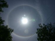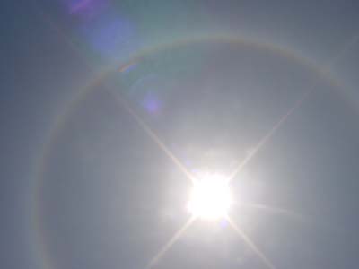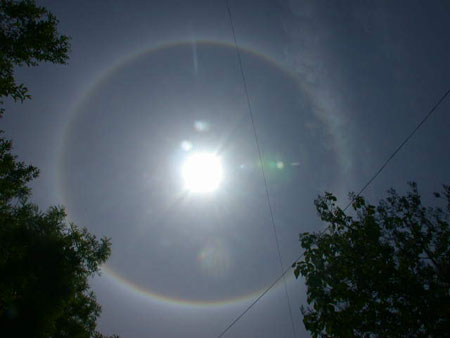 内红外紫的光环,像一条色彩鲜艳的彩带一样绕着太阳,在万里晴空下显得格外夺目。不少市民对此都感到很惊奇。一位市民说,他在北京生活了十多年,从来没有见过这种奇怪的现象。