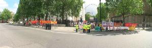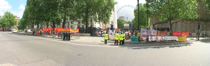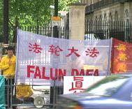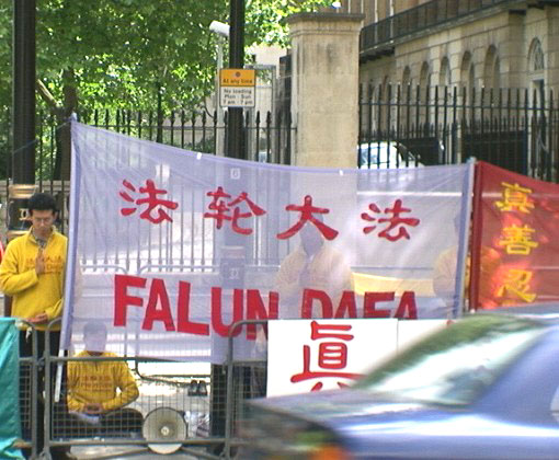 次日,当代表团来到唐宁街10号会见布莱尔首相及下午在上议院会见议长时,一些学员在外面静静的炼功。法轮功学员的祥和宁静与其他团体的嘈杂喧闹行成了鲜明的对比。不少路人关心的询问有关法轮功在中国遭到迫害的详情。