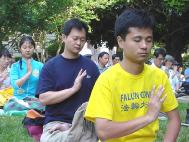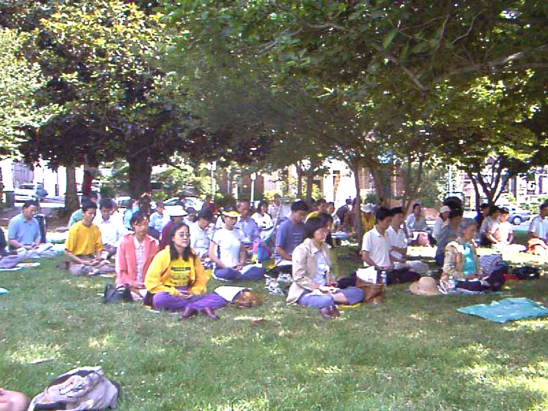 华盛顿DC学员本周末在中国大使馆前集体发正念,每逢半点、整点发正念,两次发正念之间则抓紧时间学法、炼功、交流。越来越多的学员真正意识到在这历史关键时刻作为大法粒子的重大责任和整体迈进的意义。
