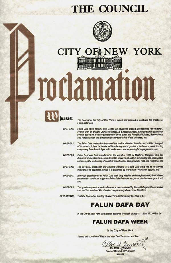 纽约市议会宣布2002年5月13日为纽约市