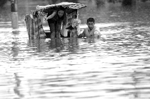 中国官方的新华社报道说,暴雨和洪水使上万人无家可归,30多个县、300多个乡镇受灾。