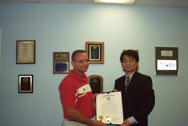 | 议员颁发褒奖 | 学员赠送法轮功书籍和录像带 |