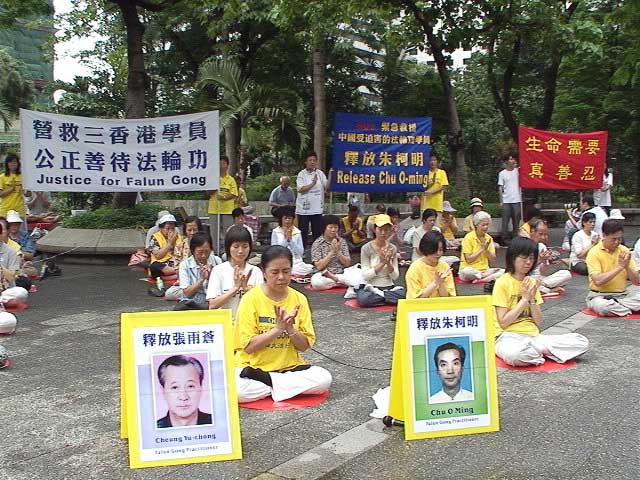 香港的法轮大法修炼者今天向您与特区政府请求,尽力协助三名被拘押在中国大陆的香港法轮功学员返回香港。他们其中两人,张雨苍与孙先生,是在上月赴内地途中,据称因搜出携带法轮功真相资料而被拘留。另一名香港永久居民朱柯明,因依法起诉中国国家主席江泽民等迫害法轮功民众,被大陆当局非法拘捕及判刑,至今仍在狱中。