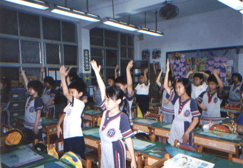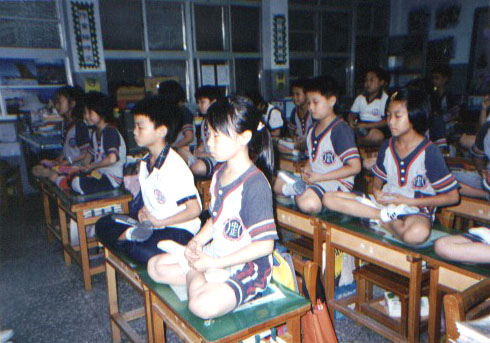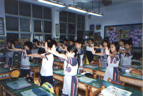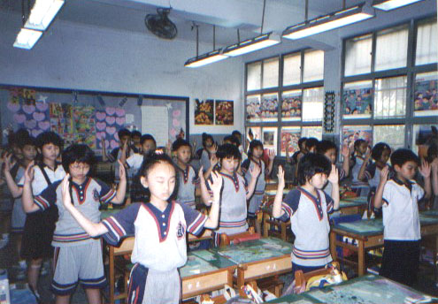 (1) 中正国小303班王老师是在寒假法轮功教师研习营得法,觉得大法好,这学期一开学在征求家长的认同后,就安排班上学生学炼,每周两节课,由大法弟子张阿姨到班教功,孩子们很喜欢学炼,觉得对身体好又可做乖孩子。