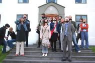 这一消息被一些善良的冰岛人民听说后,在民众、媒体和社会各团体引起强烈反响。以下这些照片是昨天(6月12日)一些善良的冰岛民众在总理办公室外面抗议的情景。他们用布条把嘴封起来,表示对限制言论自由行为的抗议。以这种方式表达他们对扣押法轮功学员这一违反冰岛的民主自由条款的不满,和对中国江泽民违反人权行为的抗议。
