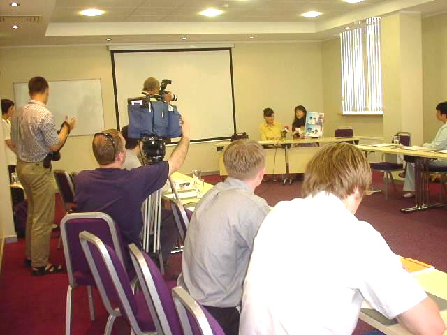 这次新闻发布会是由欧洲和北美学员共同举办的。尽管时间紧和语言不通,学员们齐心协力,分工合作,仅用一天的时间,完成了准备会议内容、落实场地和通知媒体等工作。