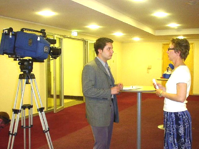 一位德国学员代表大法弟子向与会媒体讲述了我们来拉脱维亚的目的、介绍了法轮功是一种修心养性的功法、揭露了江泽民极权政府残酷迫害遵循“真善忍”的法轮功学员的事实和呼吁拉脱维亚人民帮助我们停止这场迫害。