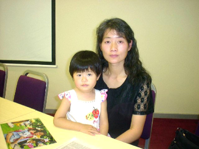 接下来,澳洲学员戴志珍抱着两岁女儿声声泣泣地叙述了江泽民一伙极权政府在中国害死其夫,使她原本幸福美满的一大家人四分五裂和家破人亡的事实。年仅两岁的小法度静静地搂着妈妈。她那天真严肃的表情,发出无声而有力的呐喊:我要爸爸!停止迫害法轮功学员!母女俩的亲身遭遇,使许多与会者动容。