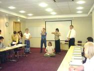 | 戴志珍女士和女儿法度 | 学员和记者交谈 | 学员演示功法 |