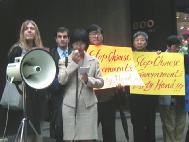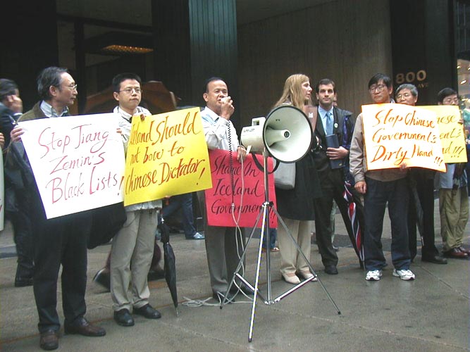 《北京之春》杂志社代表薛先生代表全体朋友,对江泽民政权通过冰岛政府将独裁专制延伸到海外,禁止法轮功学员进入冰岛,表示抗议。他认为这是冰岛政府的耻辱。