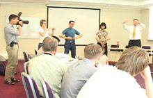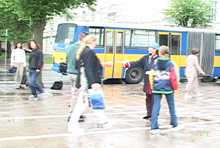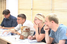 | 学员在里加演示功法 | 塔林的记者仔细听讲 | 学员在维尔纽斯作功法演示 |