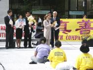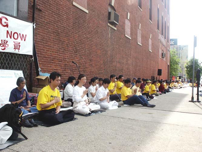 15日早晨九时,来自美洲地区及美国各地的学员聚集到戴利广场集体炼功,发正念,并举行新闻发布会。